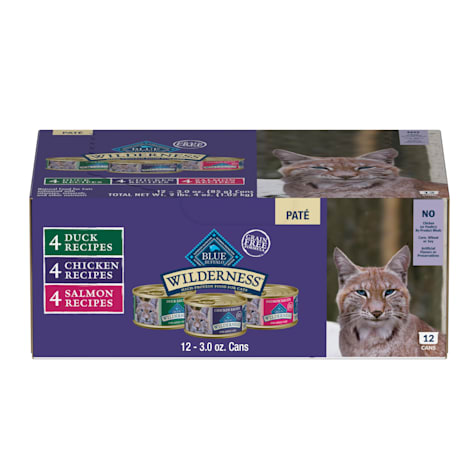 Blue Buffalo Wilderness Natural Adult Chicken Salmon Duck Pate Variety Pack Wet Cat Food 3 Oz Count Of 12 Petco